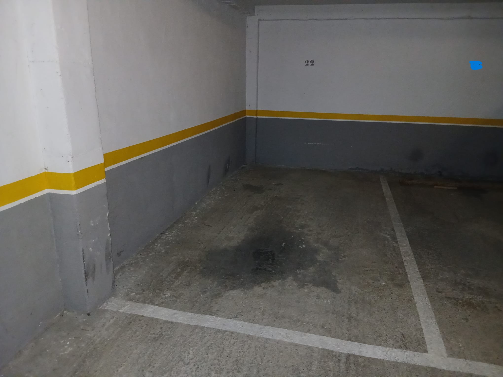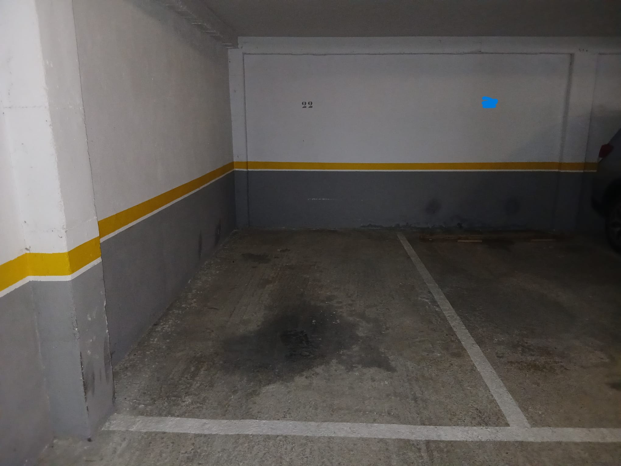 Paza de garaje amplia, pero con acceso solo para coche pequeño por su espacio para maniobrar. Garaje cerrado y comunitario, con puerta automática. Muy céntrico.